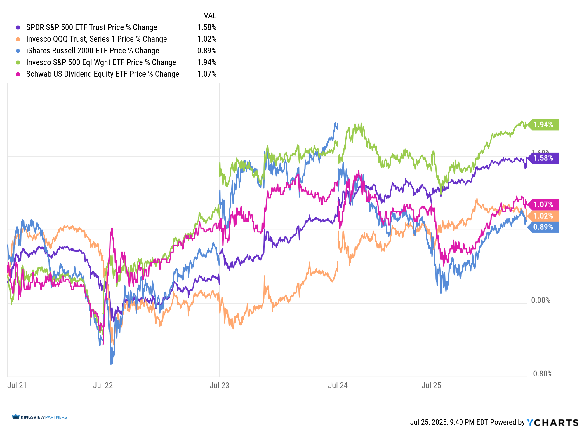 Updated: 7/28/2025. Historical references do not assume that any prior market behavior will be duplicated. Past performance does not indicate future results. This material has been prepared by Kingsview Wealth Management, LLC. It is not, and should not, be regarded as investment advice or as a recommendation regarding any particular security or course of action. Opinions expressed herein are current opinions as of the date appearing in this material only. All investments entail risks. There is no guarantee that investment strategies will achieve the desired results under all market conditions and each investor should evaluate their ability to invest for the long term. Investment advisory services offered through Kingsview Wealth Management, LLC (“KWM”), an SEC Registered Investment Adviser.