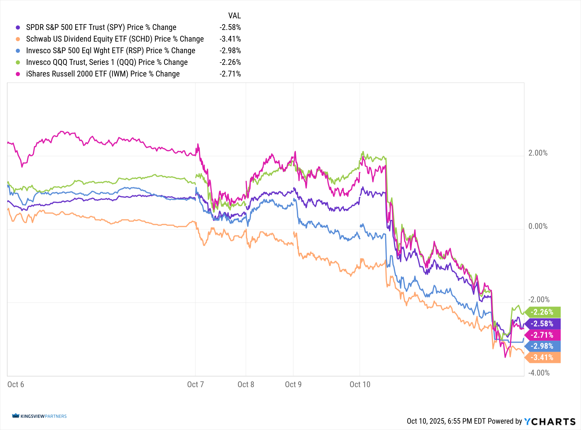 Updated: 10/13/2025. Historical references do not assume that any prior market behavior will be duplicated. Past performance does not indicate future results. This material has been prepared by Kingsview Wealth Management, LLC. It is not, and should not, be regarded as investment advice or as a recommendation regarding any particular security or course of action. Opinions expressed herein are current opinions as of the date appearing in this material only. All investments entail risks. There is no guarantee that investment strategies will achieve the desired results under all market conditions and each investor should evaluate their ability to invest for the long term. Investment advisory services offered through Kingsview Wealth Management, LLC (“KWM”), an SEC Registered Investment Adviser.