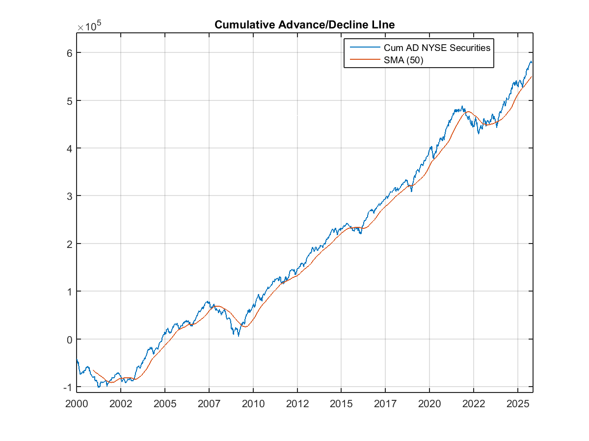 - Operating-company breadth (NYSE operating companies only) shows relative strength, sitting just off its all-time highs suggesting a ray of hope amid the clouds.