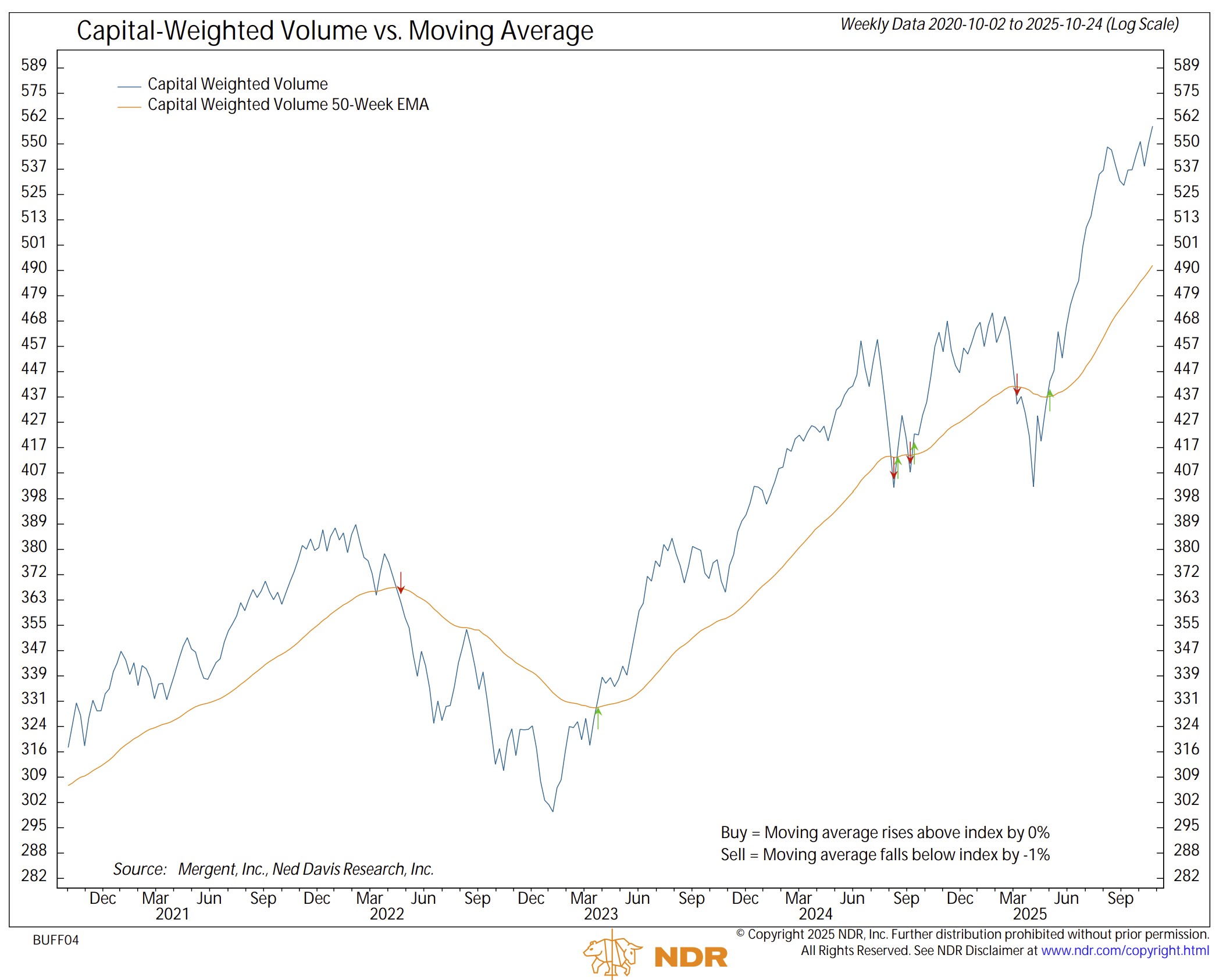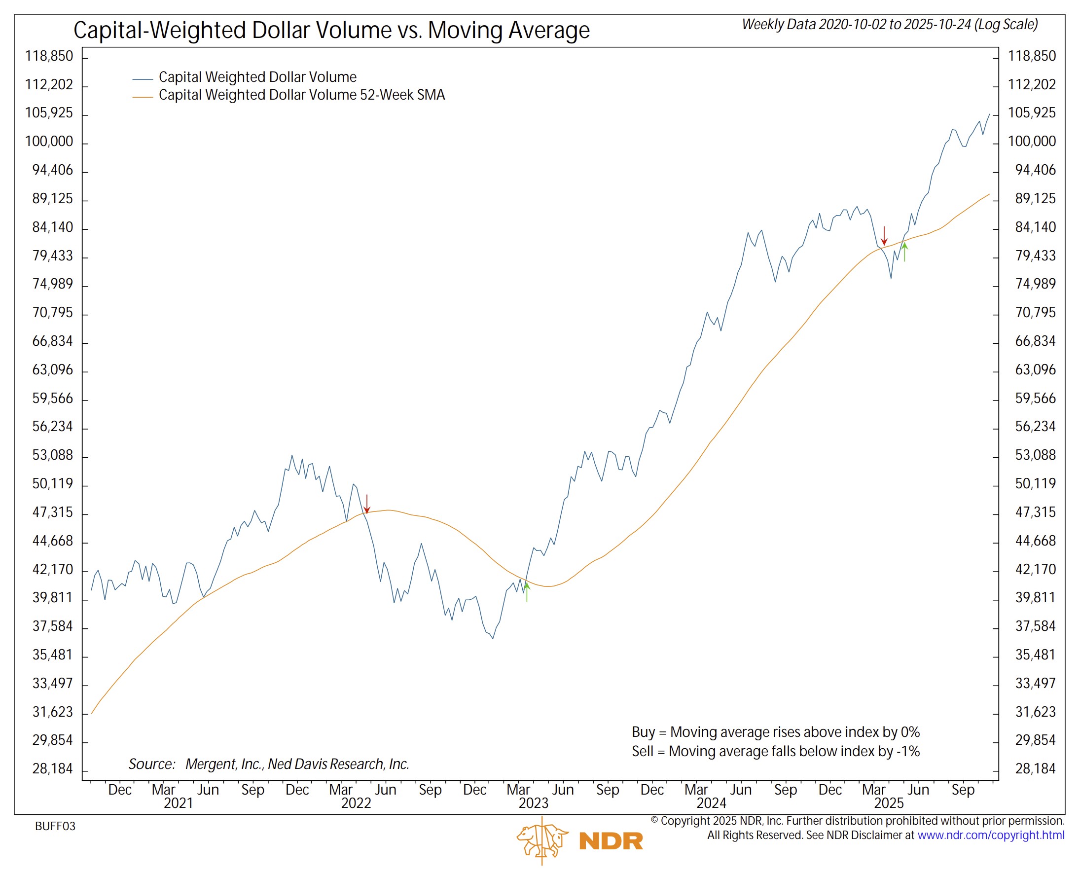In summary, the front lines have advanced beyond resistance as both capital-weighted volume and dollar flows confirm and now lead once again the move. Liquidity remains strong, breadth is improving, and leadership persists across both large-cap generals and small-cap troops. Yet the lagging brass commanders remind investors that not all units share similar strength.
