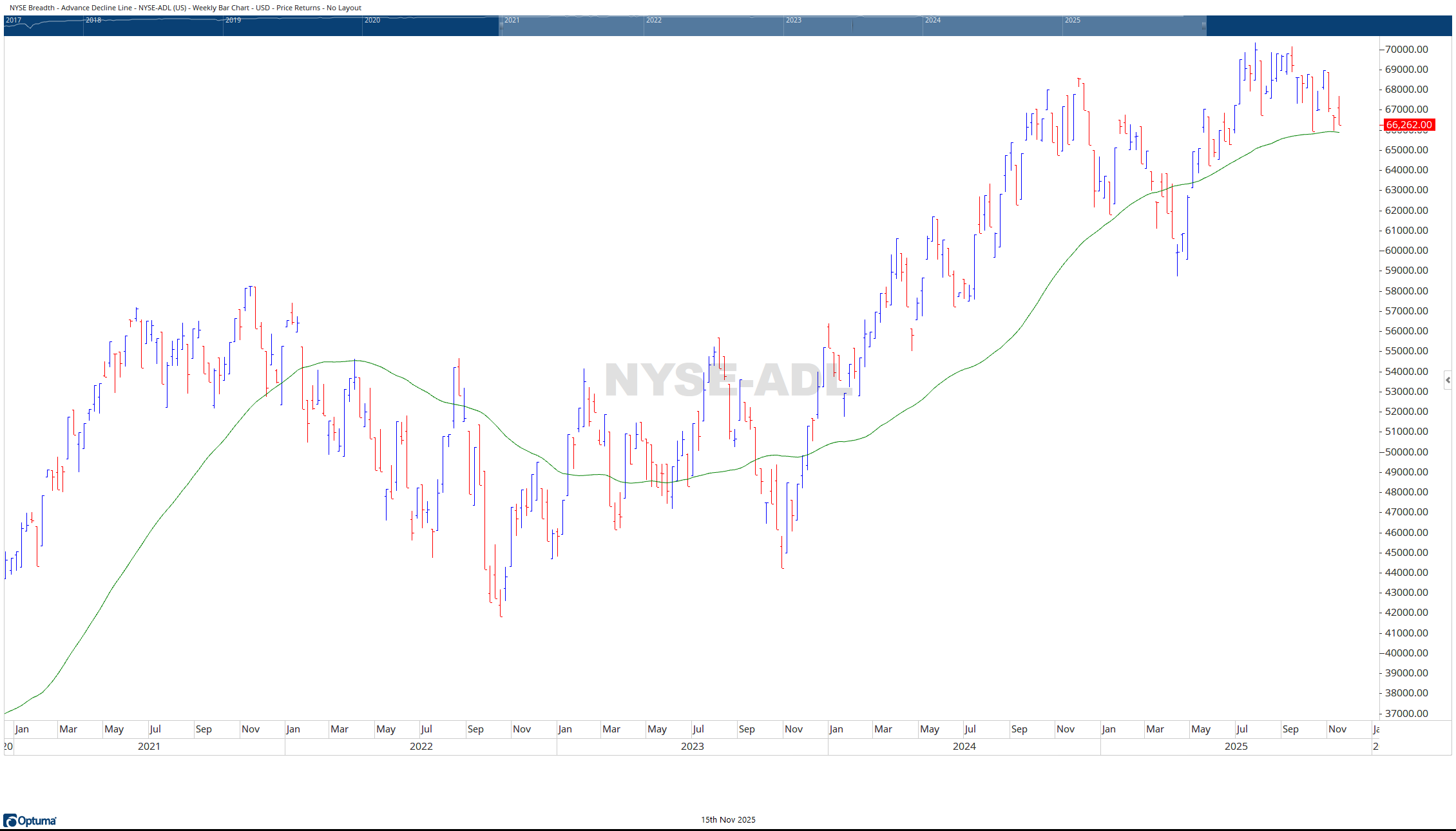 Two weeks ago, on Halloween, the S&P 500 closed the week forming a gravestone doji—a candle historically known for its ominous reputation. True to form, the market heeded that warning, delivering a bearish follow-through the following week. Yet just as the tombstone cast its shadow, a new pattern emerged last week, a potential shift in morale led by a dragonfly doji forming on the NYSE Advance-Decline Line, signaling the possibility of a broader based counterattack.