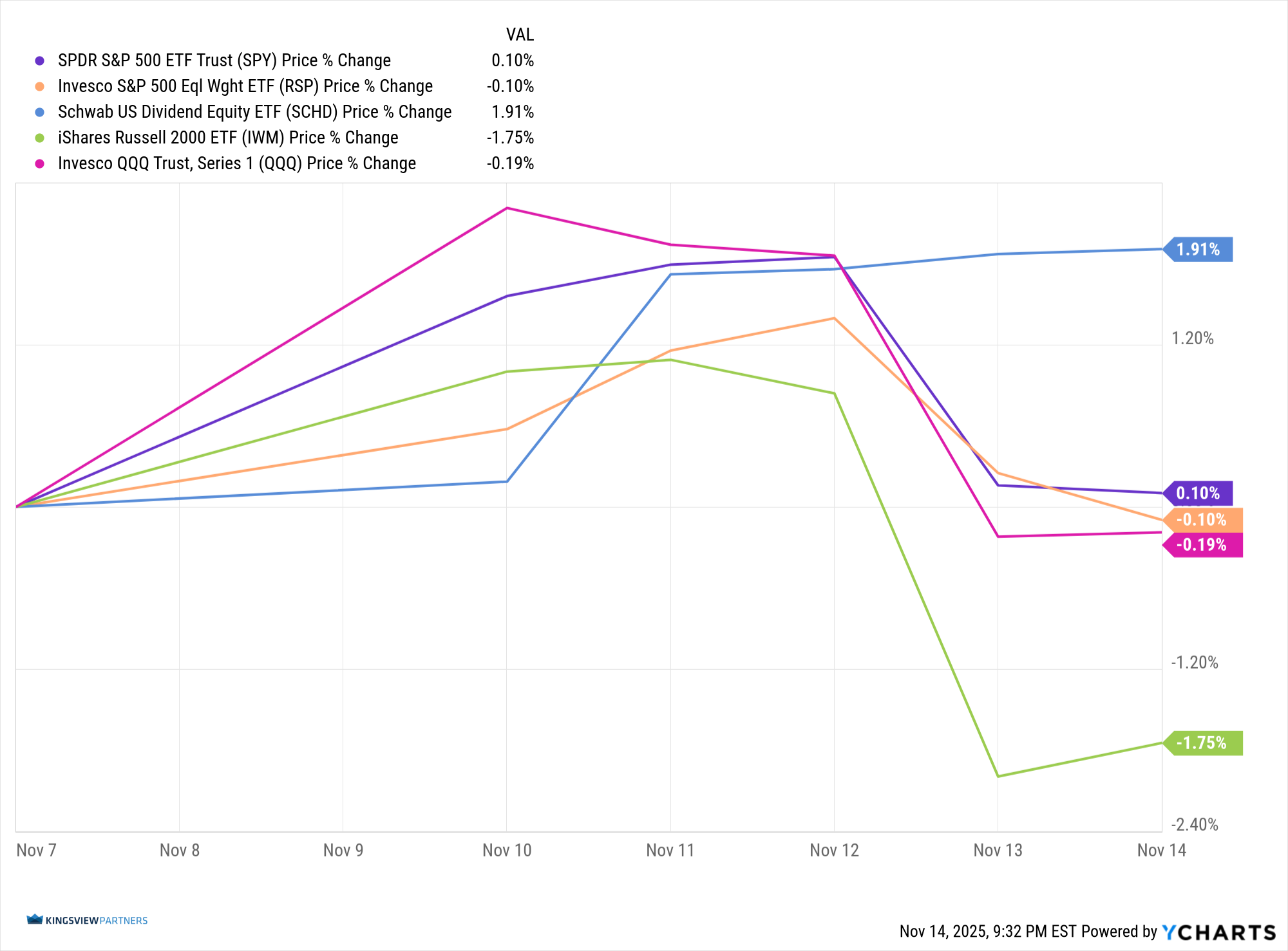 Updated: 11/17/2025. Historical references do not assume that any prior market behavior will be duplicated. Past performance does not indicate future results. This material has been prepared by Kingsview Wealth Management, LLC. It is not, and should not, be regarded as investment advice or as a recommendation regarding any particular security or course of action. Opinions expressed herein are current opinions as of the date appearing in this material only. All investments entail risks. There is no guarantee that investment strategies will achieve the desired results under all market conditions and each investor should evaluate their ability to invest for the long term. Investment advisory services offered through Kingsview Wealth Management, LLC (“KWM”), an SEC Registered Investment Adviser.