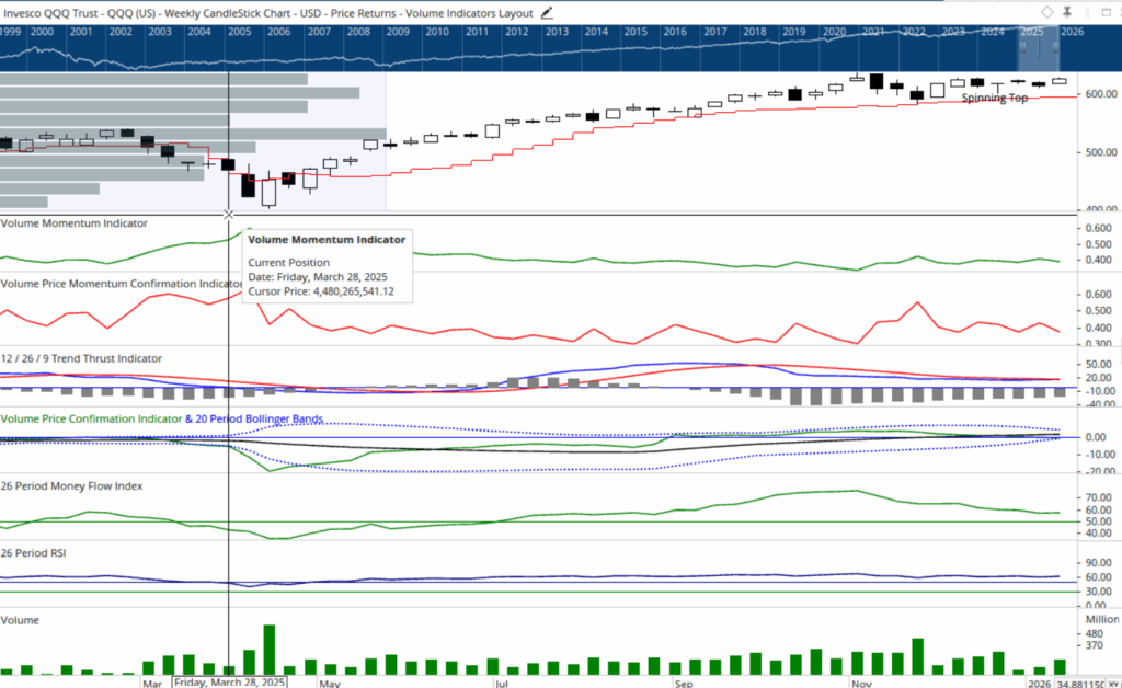 The generals, represented by the Invesco QQQ Trust, advanced 2.26% but lagged the broader formation. The lieutenants, represented by the SPDR S&P 500 ETF Trust, rose 1.64%. The S&P 500 Index finished up on the week, breaking to new all-time highs but underperforming the broader market. This divergence between broad based price strength and headline leadership continues to define the current campaign.