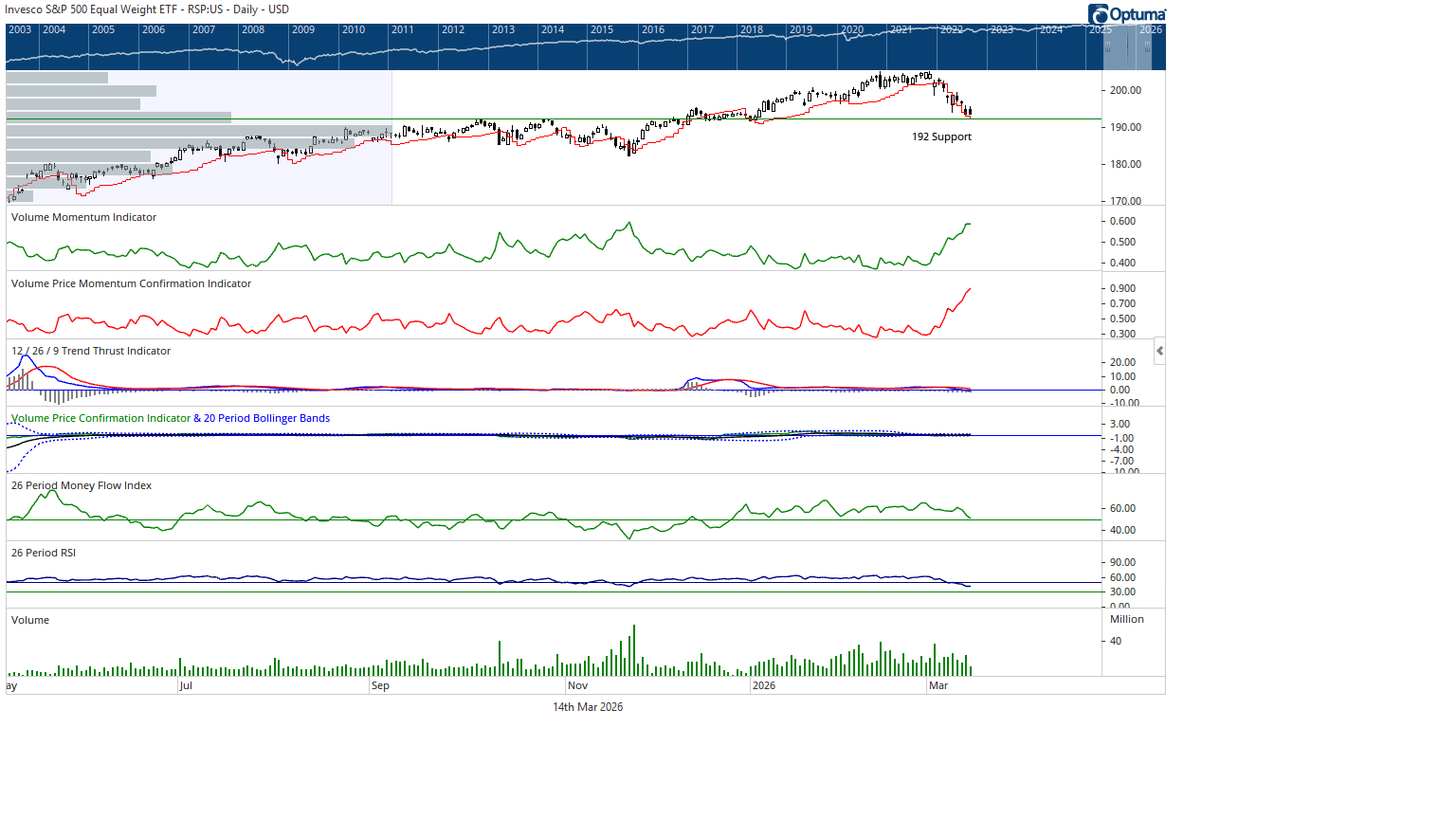 With multiple units approaching technical support while breadth weakens, the next move could prove decisive. If support holds and downside volume fails to expand materially, the current pullback may represent a war-driven shakeout rather than a structural breakdown. However, a decisive breach of support accompanied by expanding downside volume would suggest that distribution is gaining control of the battlefield. In uncertain environments like these, discipline, position sizing, and respect for support levels remain the investor’s strongest defensive tools.