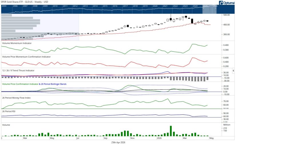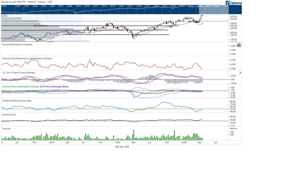 The troops, represented by the iShares Russell 2000 ETF, made a new all time high early in the week and finished up 0.33%, closing at new weekly highs but off the intraweek peak. From a volume perspective, the troops are entering a zone that has historically aligned with exhaustion rather than expansion.
