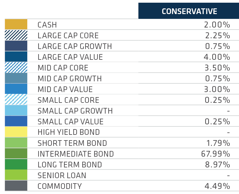 We believe that investors must remain invested to achieve their financial goals. The Multi-Strategy Portfolio Series utilizes four investment ideologies to provide an enhanced return when the economy is strong and defense when the economy weakens. The flexible nature of the satellite components allows each portfolio to increase or decrease its equity exposure depending on the phase of the economy.