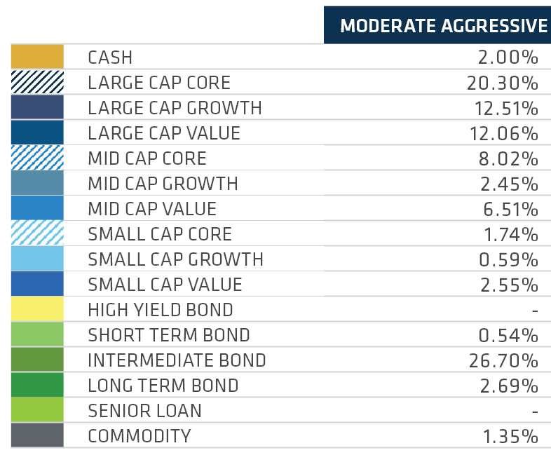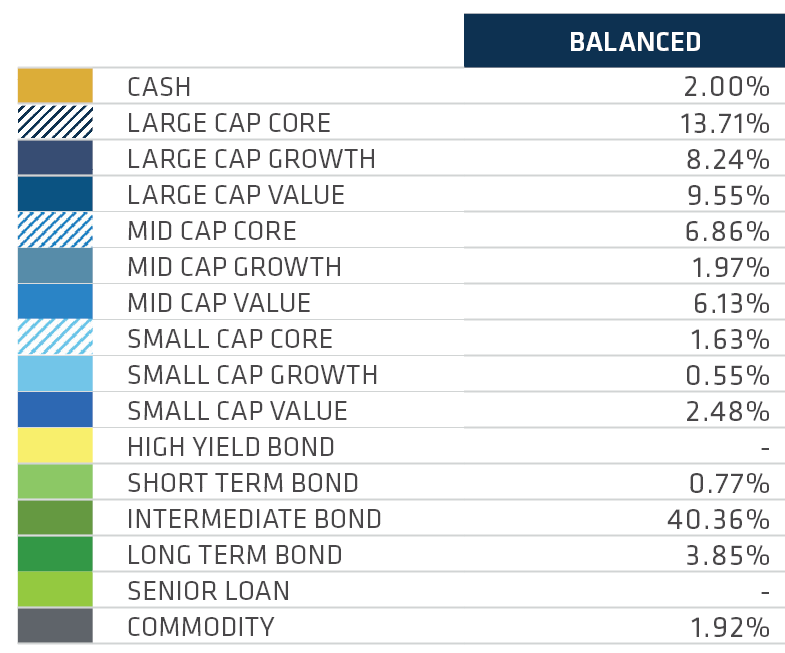 ** Bloomberg US Aggregate Bond Total Return Index/S&P 500 Total Return Index, % to each index dependent on risk tolerance