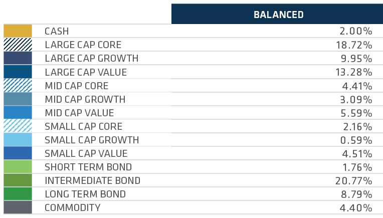 ** Bloomberg US Aggregate Bond Total Return Index/S&P 1500 Composite Total Return Index, % to each index dependent on risk tolerance